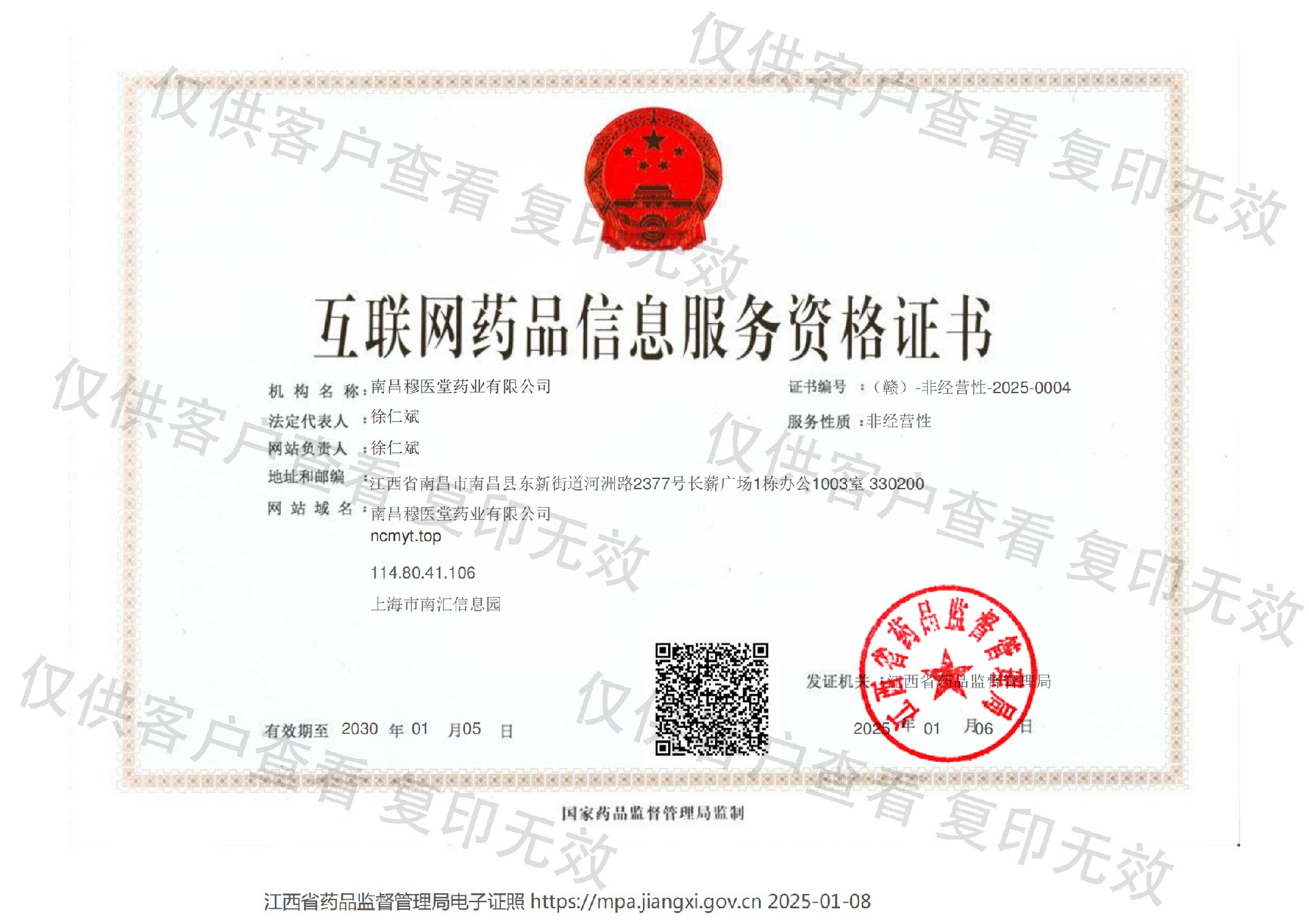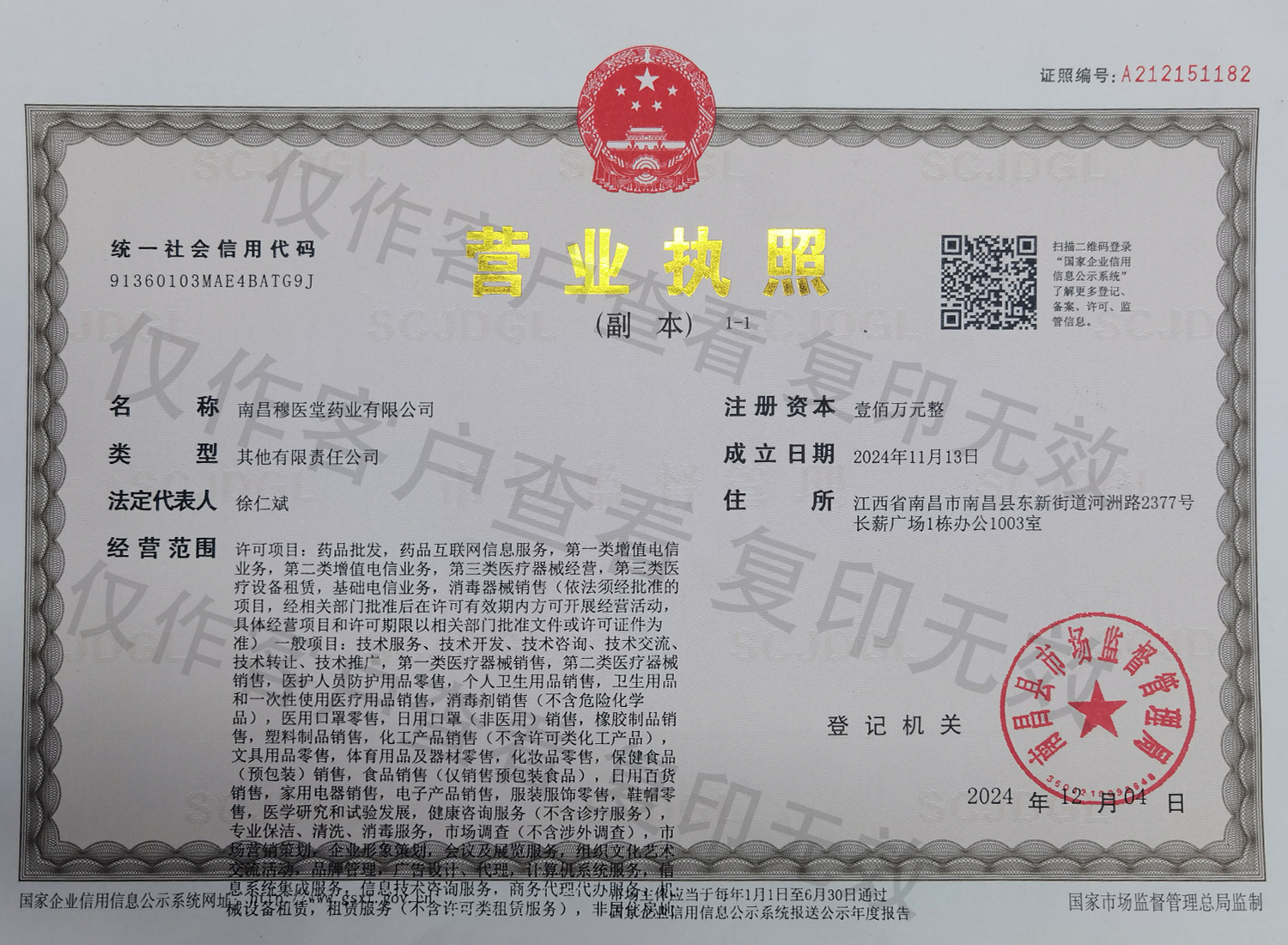 南昌穆医堂药业有限公司,2024年11月创立,主营药品和二类医疗器械。